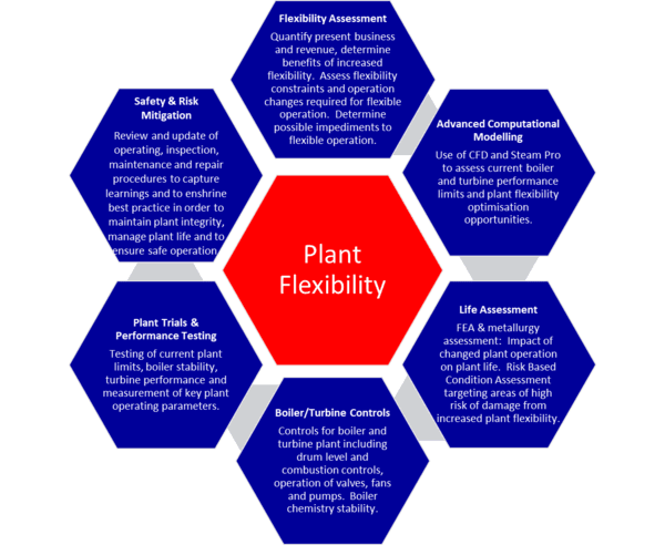 To quantify these issues and determine methods to overcome any limitations these have on flexible operation, more detailed analyses are undertaken, which include: